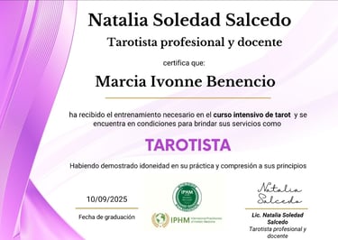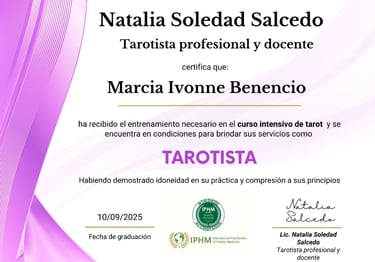 Trabajo con Registros Akáshicos, Tarot Evolutivo y Oráculos, además de realizar limpieza energética integral de la persona.
